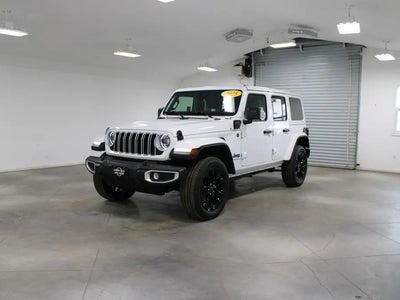 FREE 20 YEAR / 200,000 MILE POWERTRAIN WARRANTY, ONE OWNER, CLEAN CARFAX, 4X4 FOUR WHEEL DRIVE, BLUETOOTH, SIRIUS XM SATELLITE RADIO, UCONNECT, APPLE CARPLAY, GOOGLE ANDROID AUTO, STEERING WHEEL AUDIO CONTROLS, TOUCH SCREEN CONTROLS, BACKUP CAMERA, KEYLESS PUSH BUTTON START, HEATED FRONT CLOTH SEATS, REMOTE START, HEATED STEERING WHEEL, SAHARA 4XE SERIES, QUICK ORDER PACKAGE 29P SAHARA 4XE, SAFETY GROUP, 20 PAINTED BLACK ALUMINUM WHEELS, 3.73 REAR AXLE RATIO, 8 SPEAKERS, BLIND SPOT & CROSS PATH DETECTION, BODY COLOR 3-PIECE HARD TOP, BRAKE ASSIST, COMPASS, DELAY-OFF HEADLIGHTS, DRIVER VANITY MIRROR, DUAL FRONT IMPACT AIRBAGS, DUAL FRONT SIDE IMPACT AIRBAGS, ELECTRONIC STABILITY CONTROL, EMERGENCY COMMUNICATION SYSTEM: JEEP CONNECT, FREEDOM PANEL STORAGE BAG, FRONT FOG LIGHTS, FRONT LICENSE PLATE BRACKET (DISC), FULLY AUTOMATIC HEADLIGHTS, HEATED DOOR MIRRORS, LOW TIRE PRESSURE WARNING, OCCUPANT SENSING AIRBAG, OUTSIDE TEMPERATURE DISPLAY, PANIC ALARM, PARKSENSE REAR PARK ASSIST SYSTEM, PARKVIEW REAR BACK-UP CAMERA, PASSENGER VANITY MIRROR, POWER DOOR MIRRORS, POWER WINDOWS, REAR WINDOW DEFROSTER, REAR WINDOW WIPER/WASHER, REMOTE KEYLESS ENTRY, SPEED CONTROL, SPORT SUSPENSION, TELESCOPING STEERING WHEEL, TILT STEERING WHEEL.