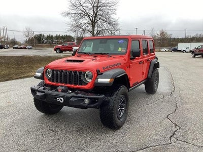 2026JeepWranglerMOAB3924WD One Owner Beast! Packed with serious power equipped with the legendary 6.4LV8SRTHEMI engine producing ~470hp and 470lbft torque, paired with an 8speed automatic transmission for thrilling performance on and offroad! Built to conquer terrain aggressive 4WD capability, ELocker front axle, front disconnecting stabilizer bar, and rugged suspension package give true trail dominance. Customer Preferred Package27X adds premium features like bodycolor 3piece hard top, Freedom panel storage bag, and comfort upgrades including Nappa leather seating, adaptive cruise control, AppleCarPlay/AndroidAuto, and a large infotainment display for modern convenience. Ready for adventure includes allterrain tires, robust offroad hardware, front winch capability, WiFi hotspot, and more tech/safety features that elevate both capability and comfort. CPO ALERT!!! Darlings Certified Pre-Owned means this Jeep comes with a powertrain warranty that will go to 7years from the original in service date or 100,000 total odometer miles whichever comes first . This vehicle has been brought to the highest standard possible and then backed by us to 100,000 miles. Darlings Auto Group is highly involved in the community and has been for a century, providing 5star service before and after the sale. We will offer free delivery within the state of Maine! This one owner 2026 Jeep Wrangler MOAB 392 is the ultimate blend of muscle, luxury, and legendary Jeep capability ready for wherever life takes you!